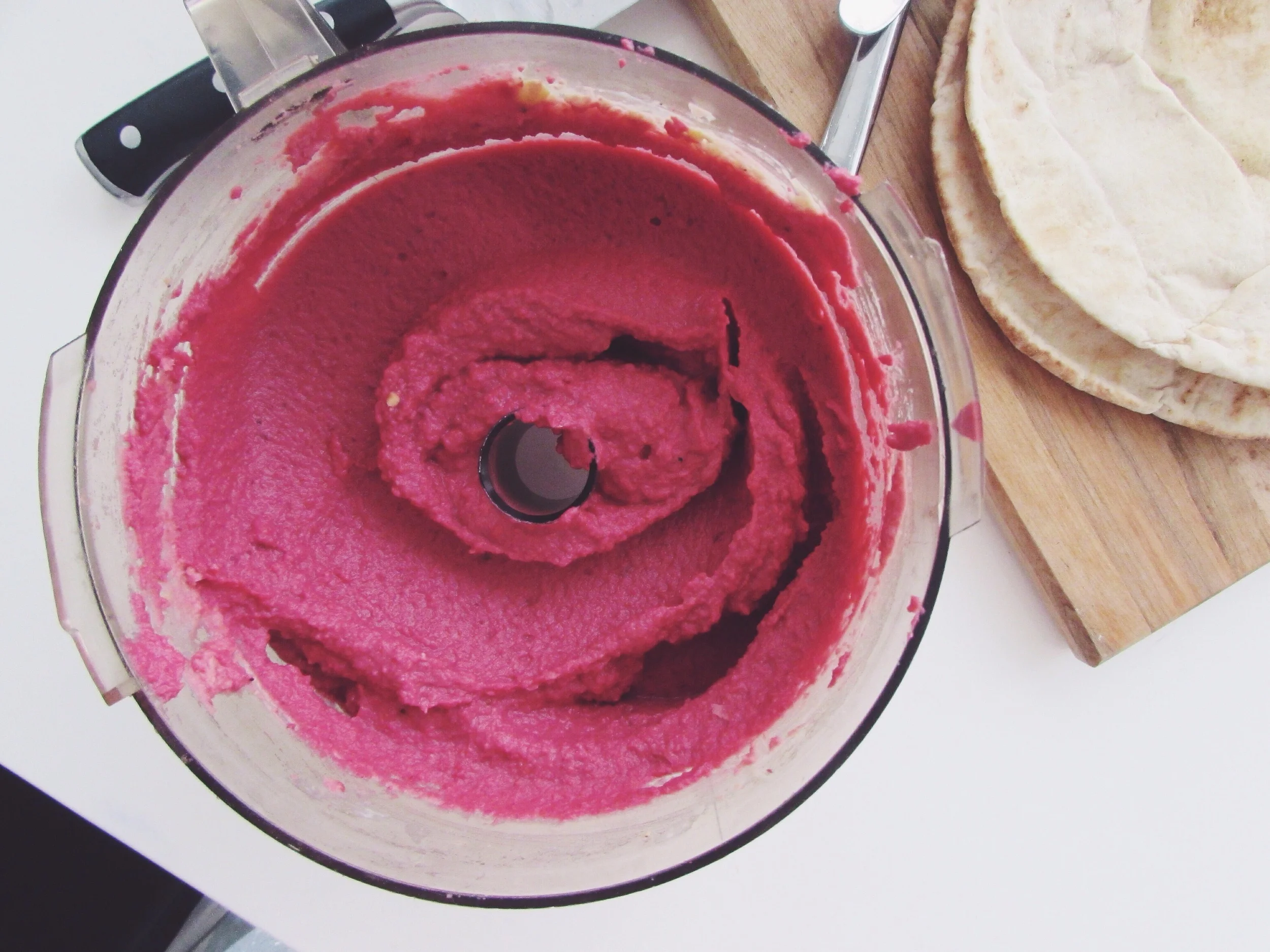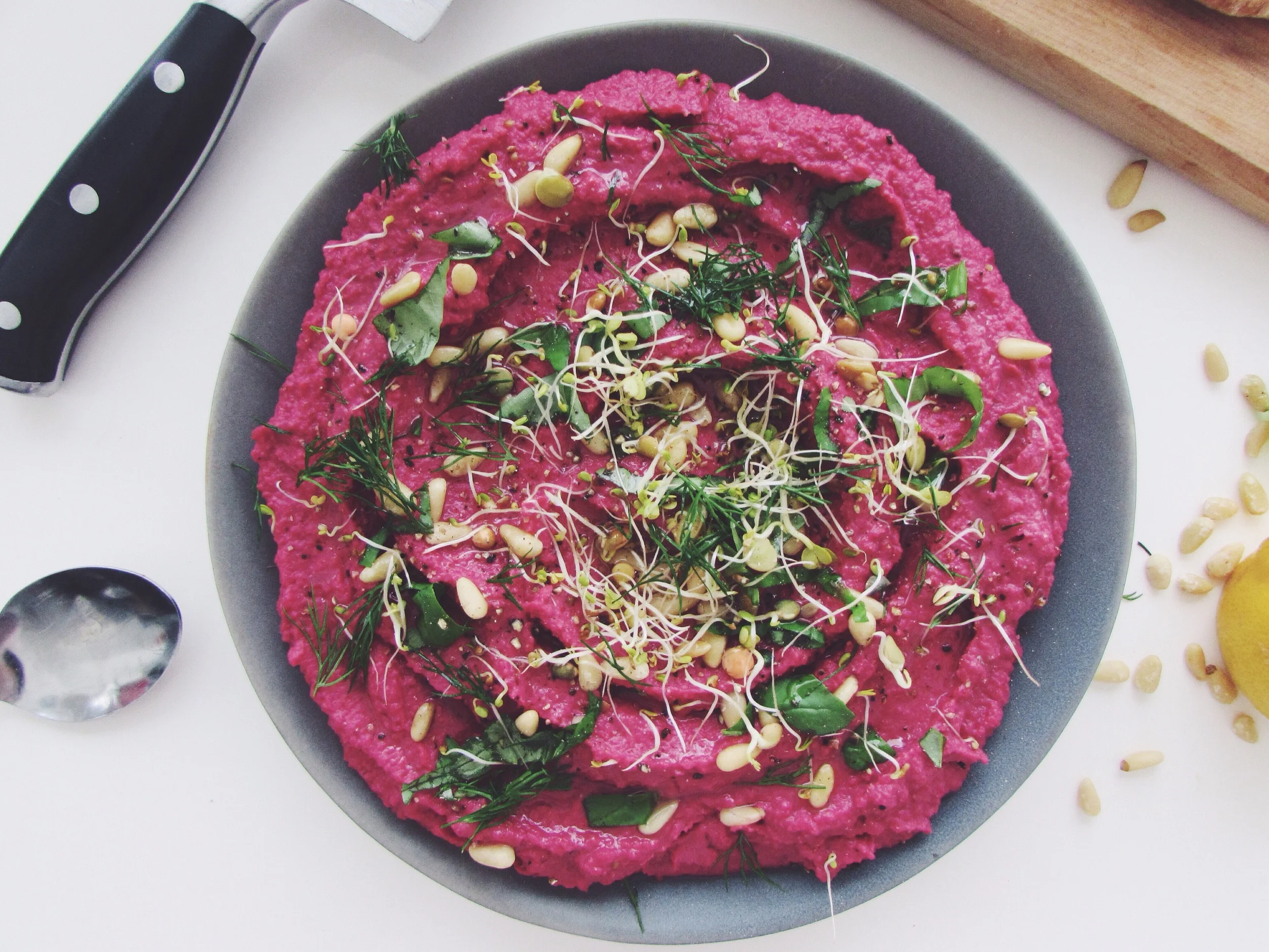 A bright and beautiful hummus, packed with fresh unique beet flavour. Created with just a handful of healthy, affordable ingredients it is the perfect dip for a veggie platter or colourful spread on sandwiches and wraps.