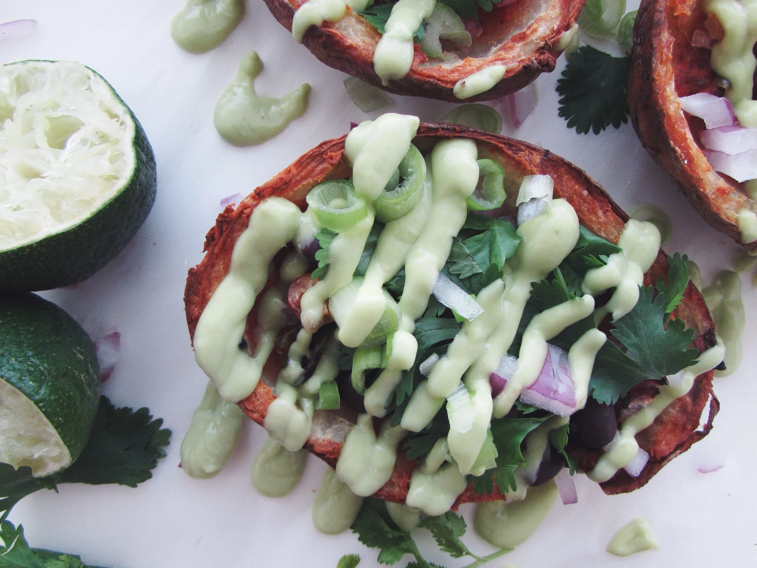 Remove and top with fresh cilantro, diced onion and a generous drizzle of avocado aioli. Serve while hot.