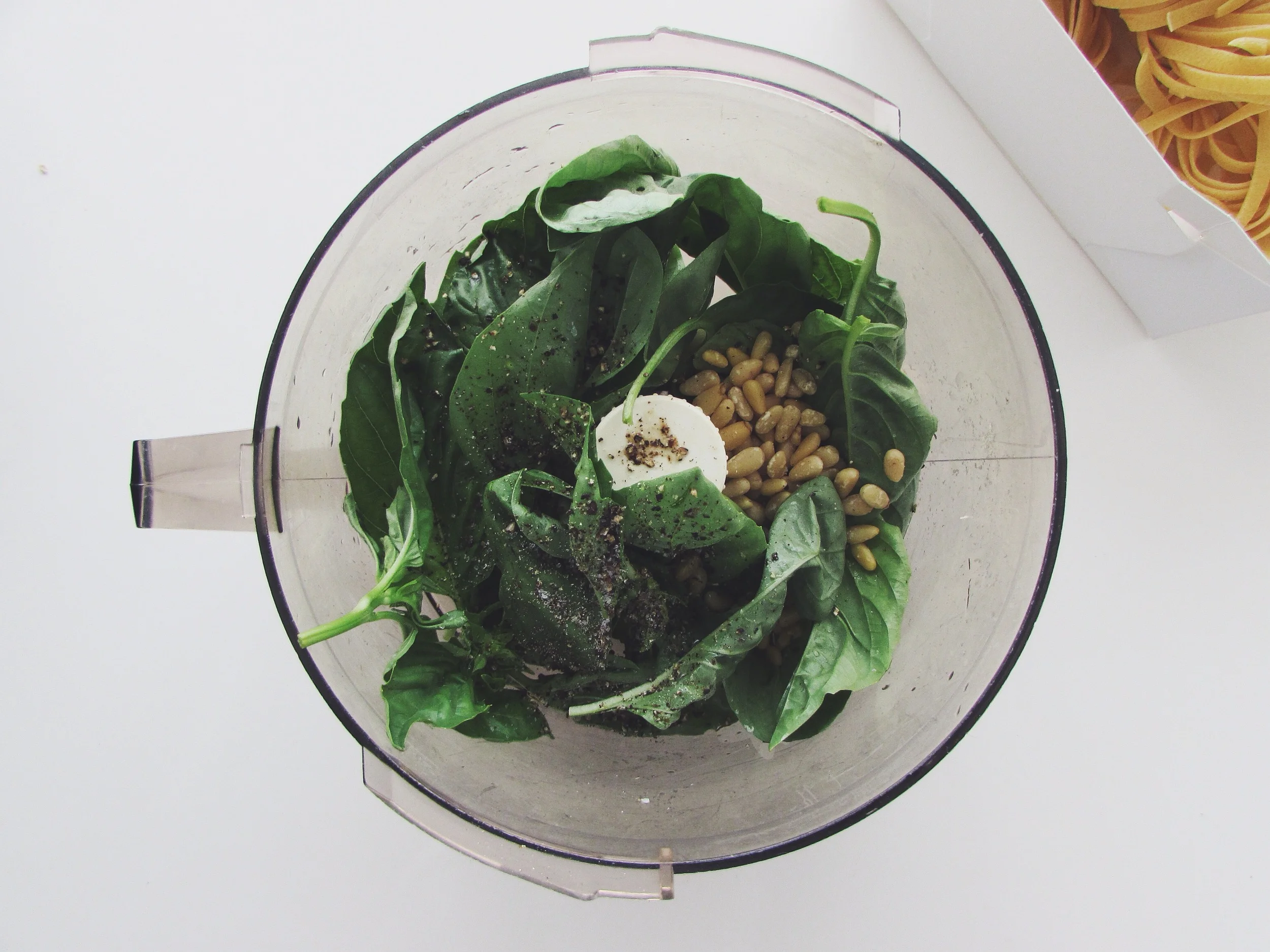 Combine all pesto ingredients in a food processor and blend until smooth. Set aside.