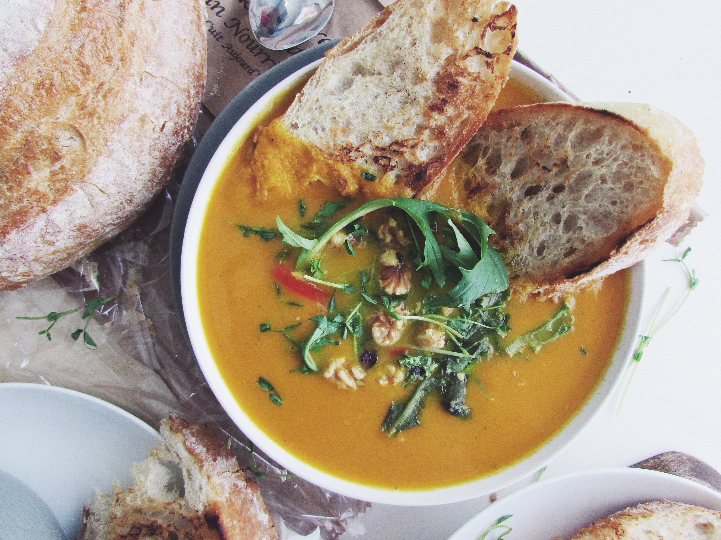 Add the vegetable stock and water to the pot. Make sure to give the bottom of the pot a stir to ensure all those good flavours go into the soup. Bring to a boil, cover and simmer for 45 minutes or until carrots are soft.