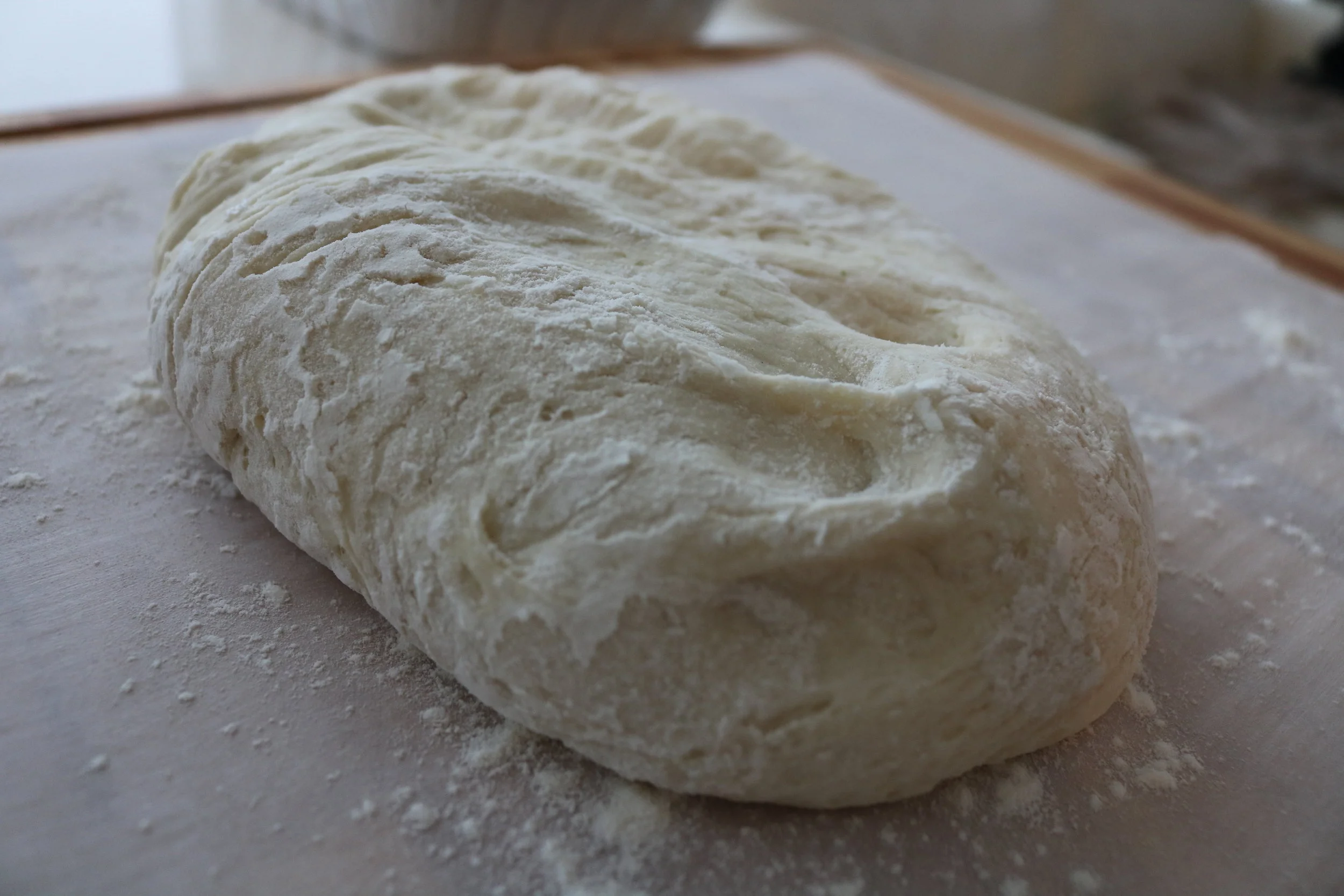 After an hour the dough should have doubled in size. Remove from the bowl and place on a well floured surface. I like to place a layer of parchment down for easy clean up.